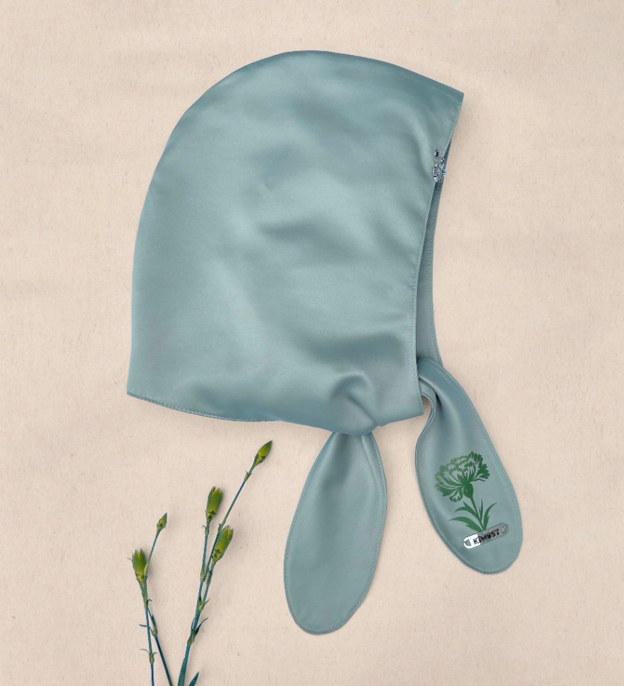 Capucha satinada verde y clavel estampado
