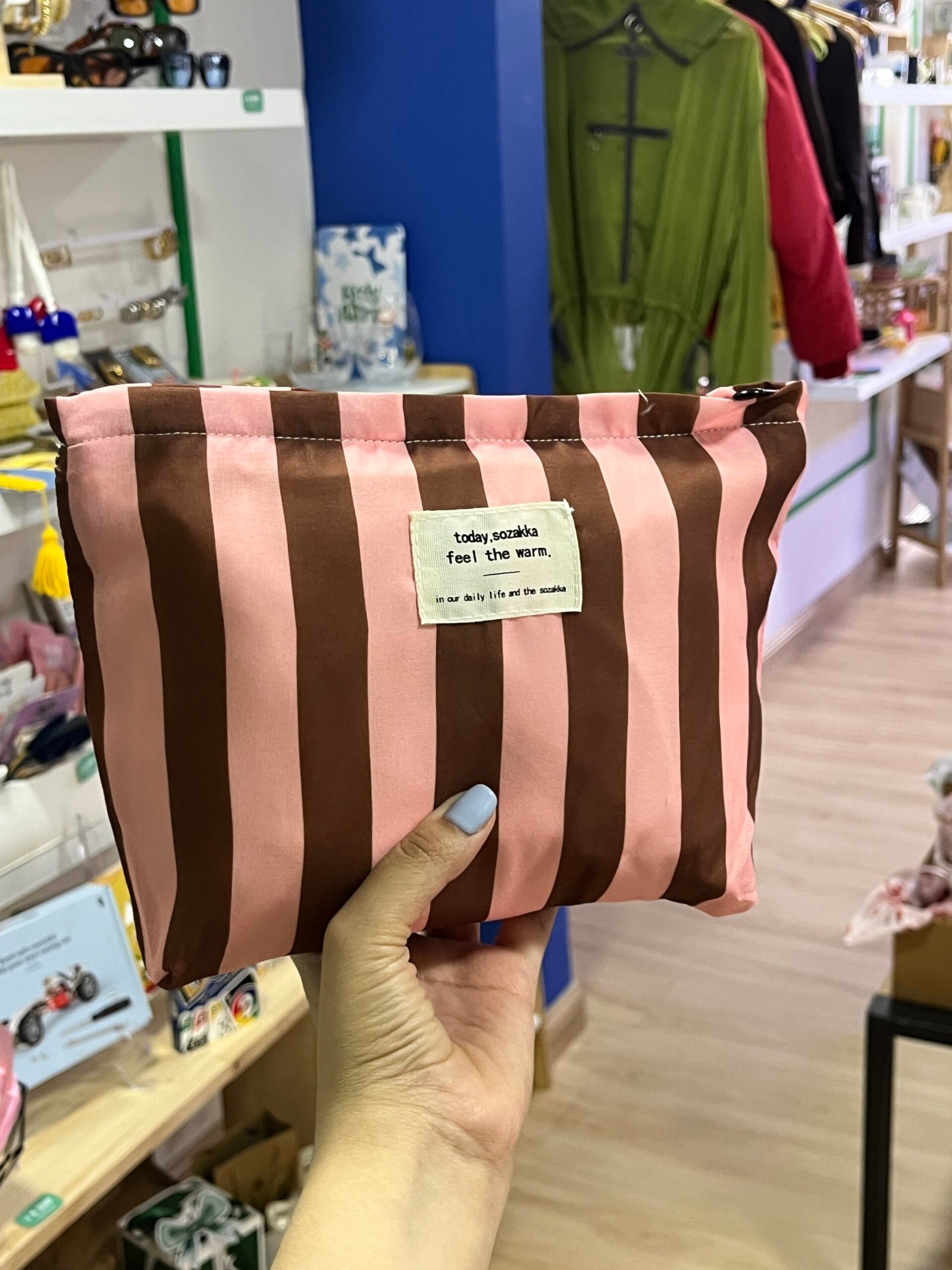 Cosmetiquera lineas marrón y rosado