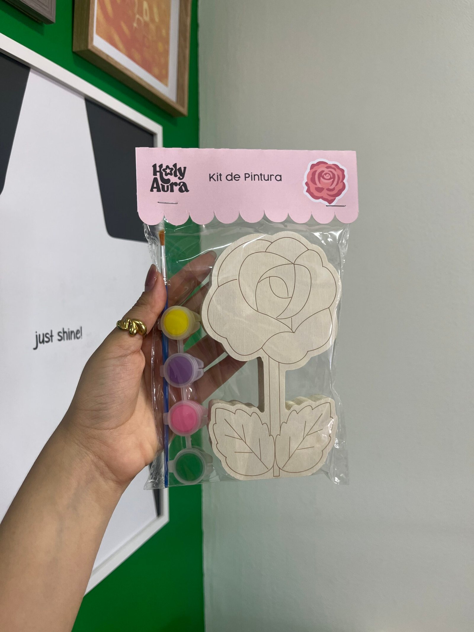 Kit de pintura madera, incluye: 1 flor de madera, 1 pincel, pinturas