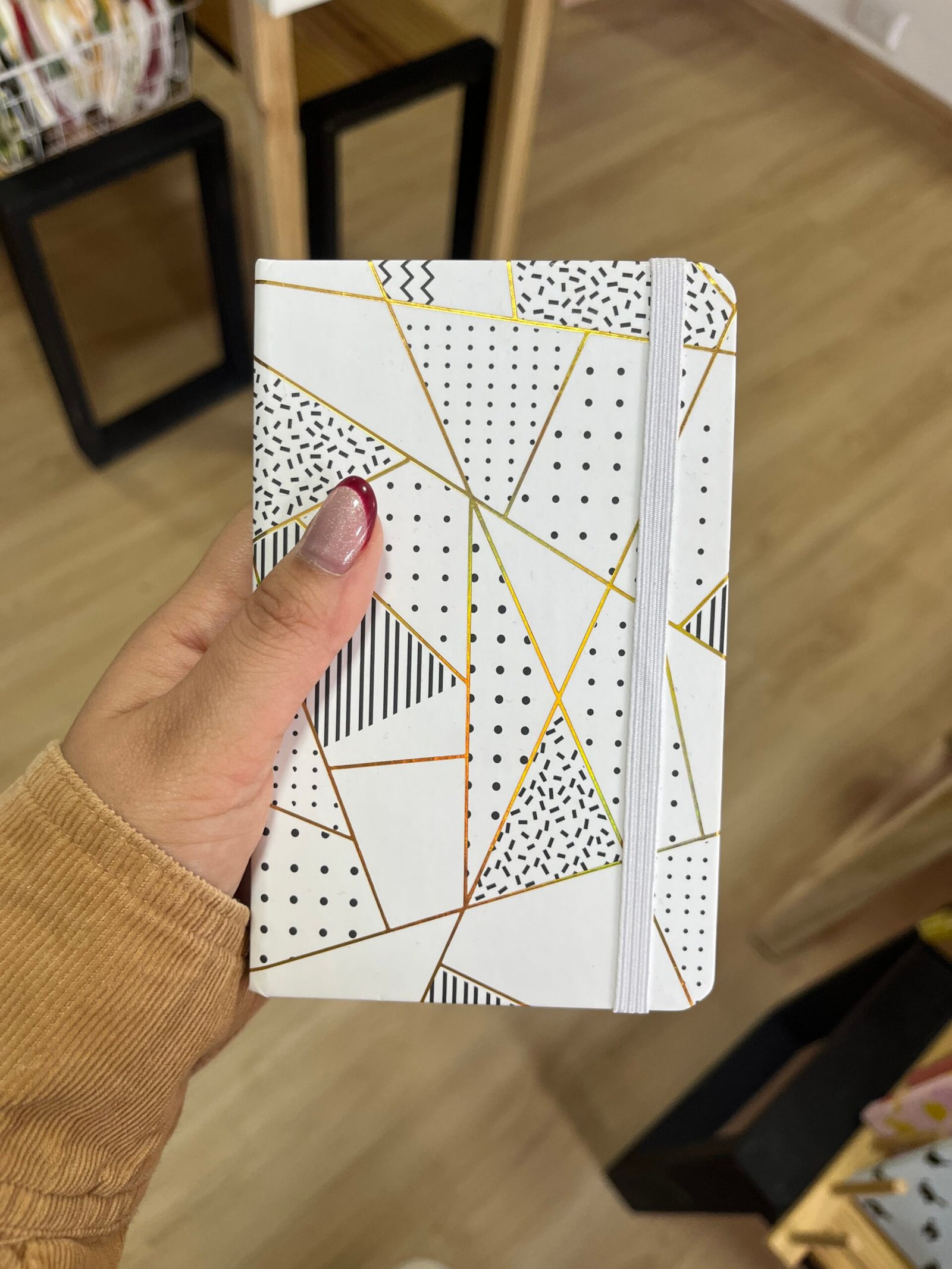Libreta con hojas blancas color blanca y negra con diseño con cuadros