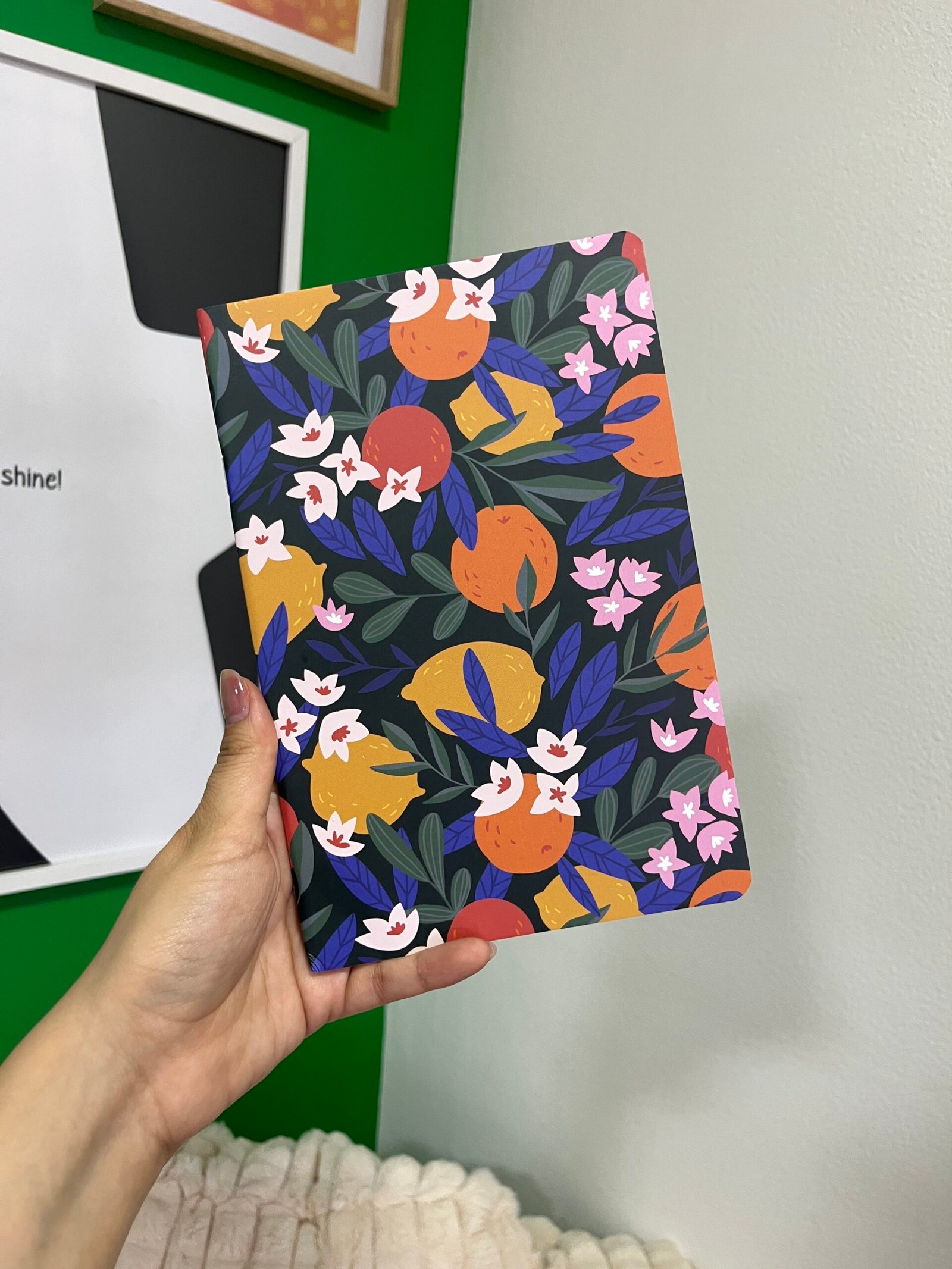 Libreta azul con limones