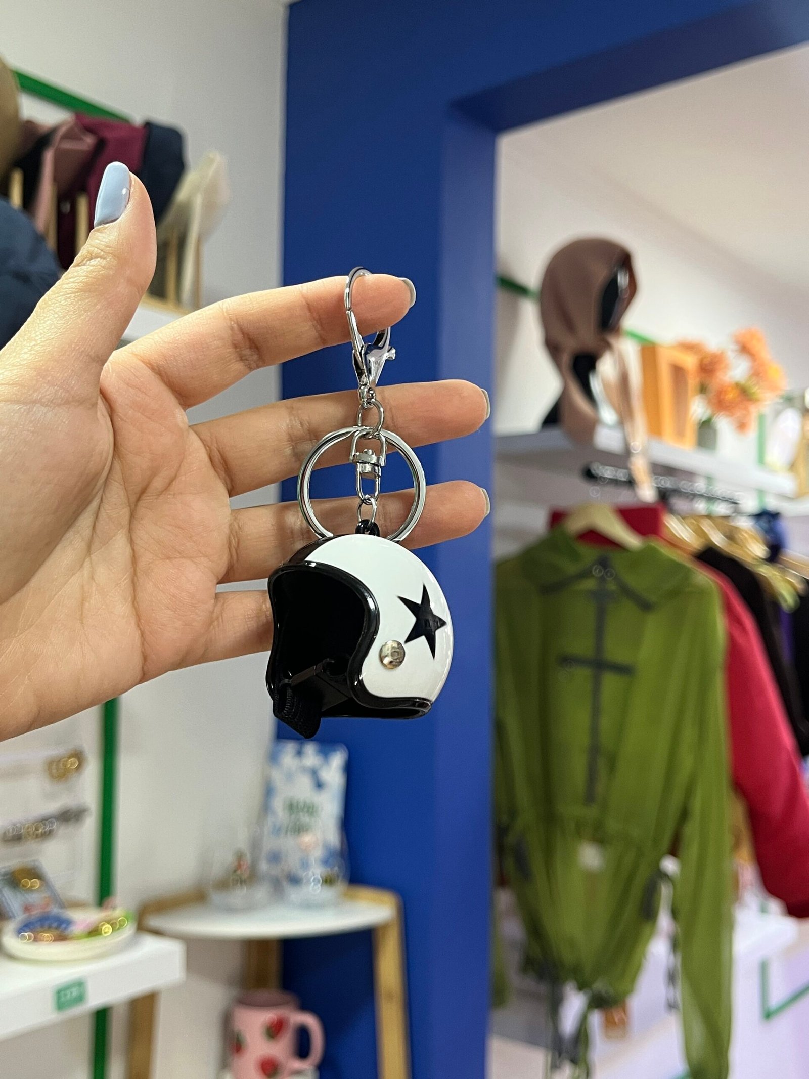 LLavero casco moto blancoLLavero casco moto blanco