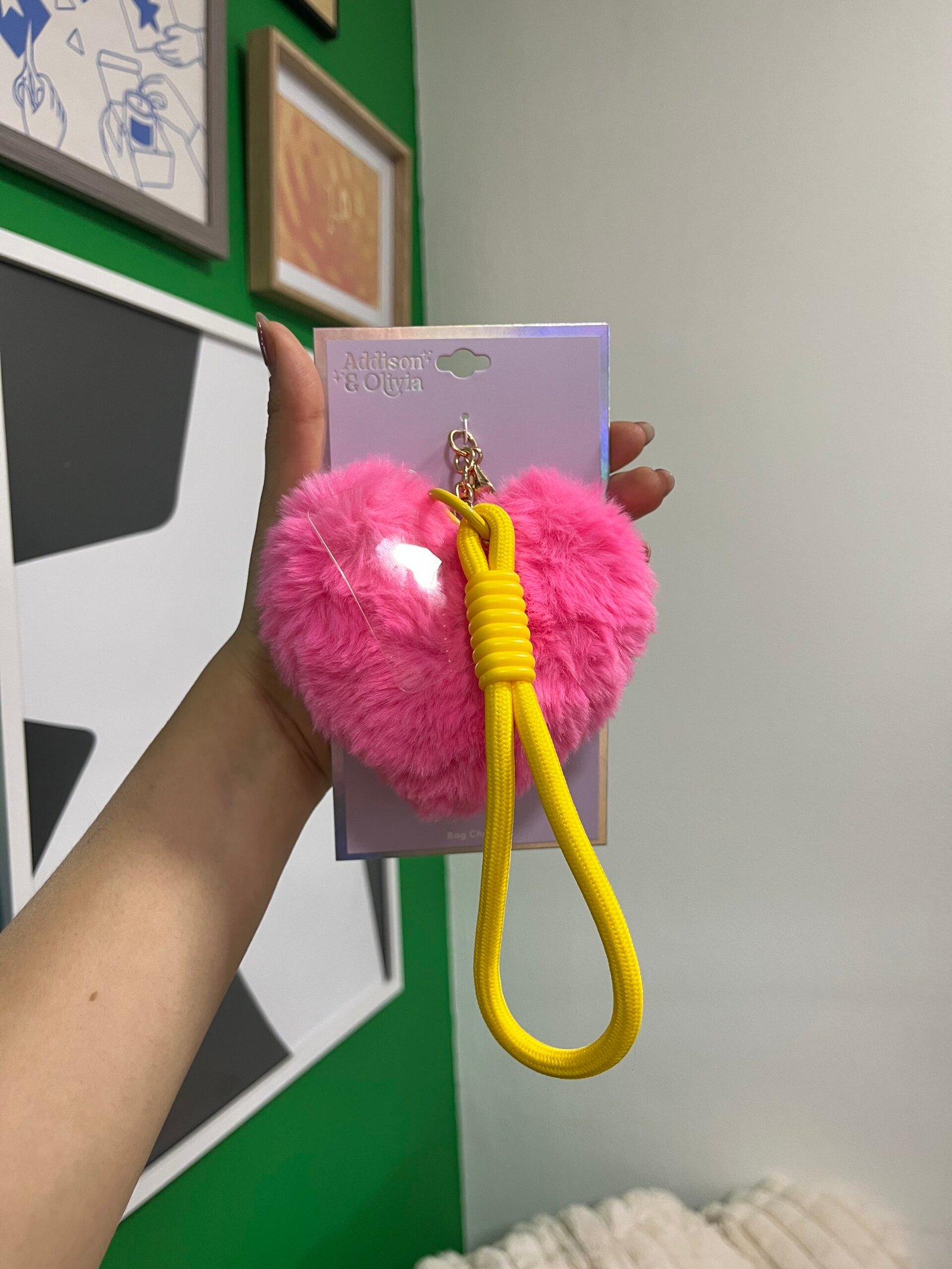 Llavero corazon rosado con colgante para celularLlavero corazon rosado con colgante para celular