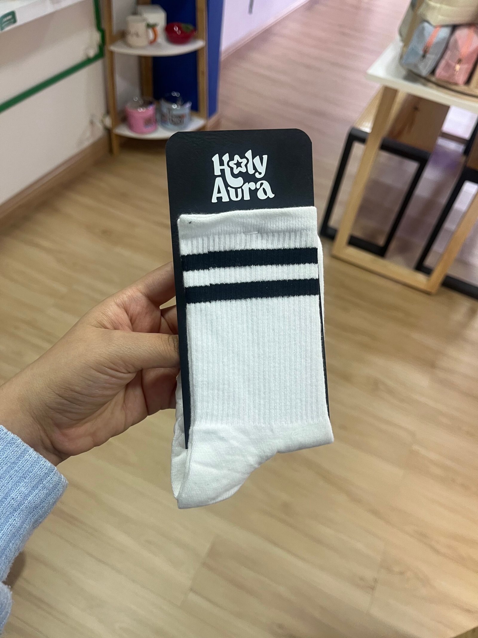 Medias ideales para yoga, pilates, barre, entre otros. color blancas y lineas negras