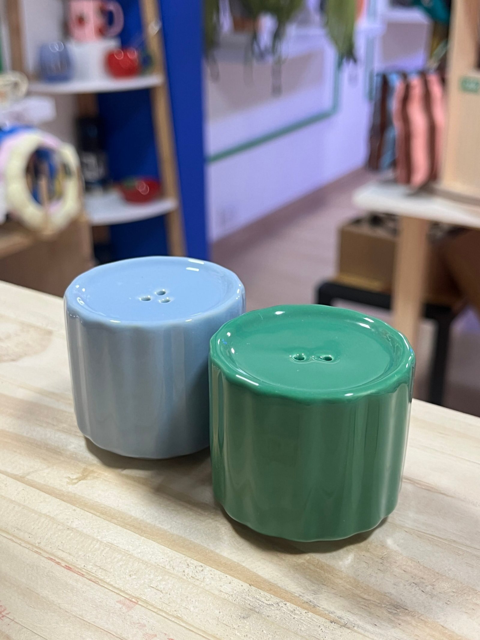 Salero y pimentero celeste y verde