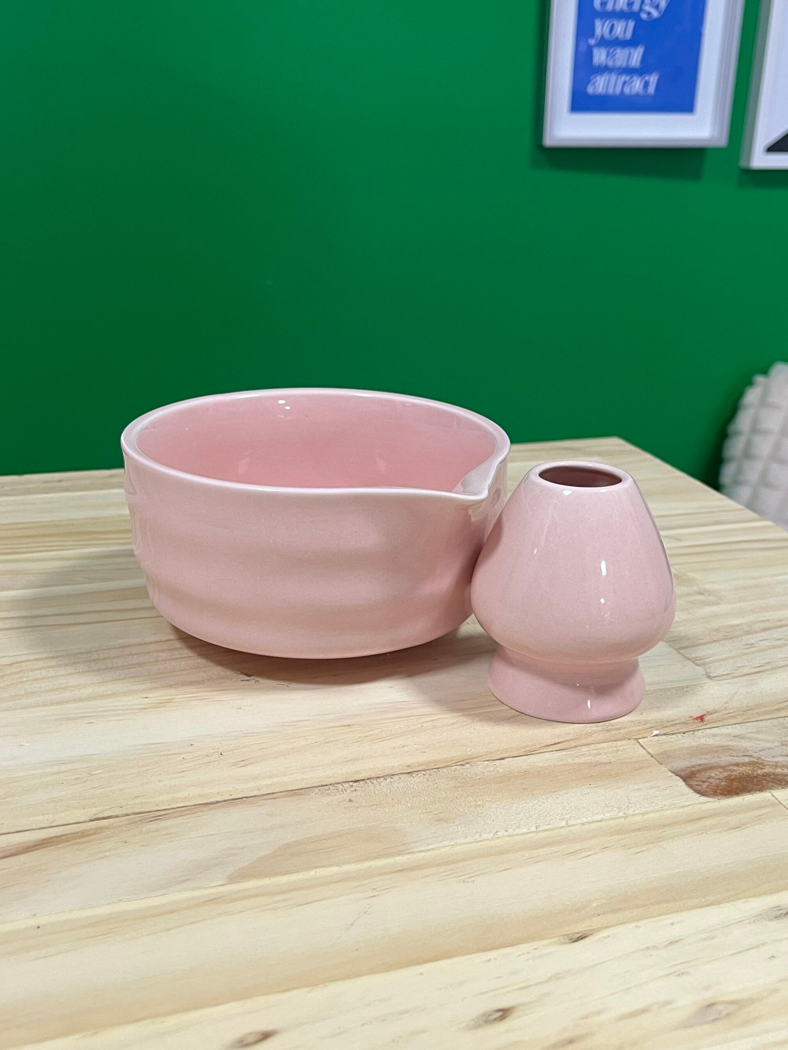 Set matcha rosado con ondas