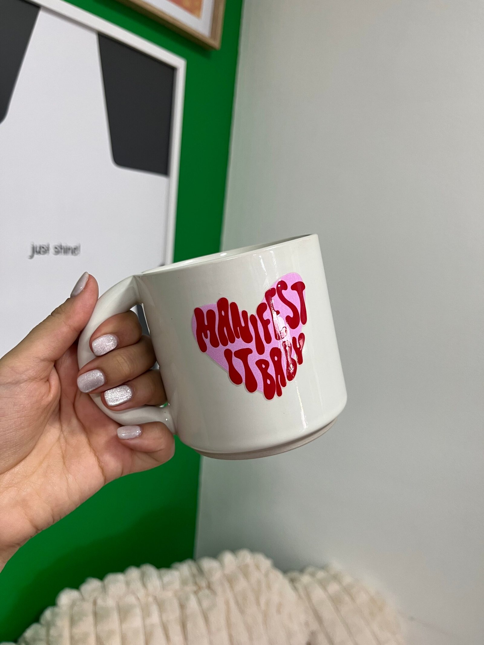 Taza frase manifest it baby rosa corazon