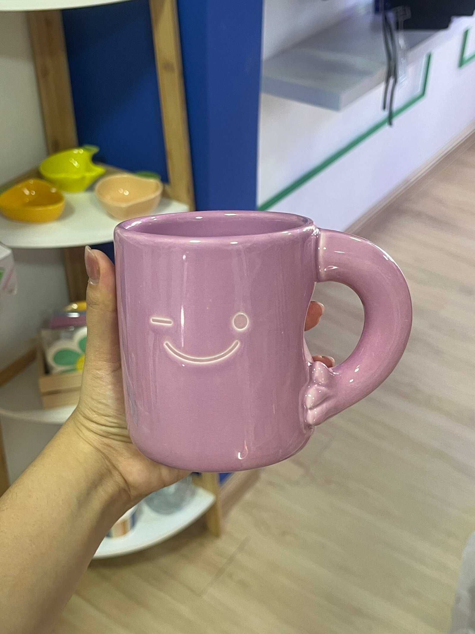 Taza morada con cara feliz y asaTaza morada con cara feliz y asa