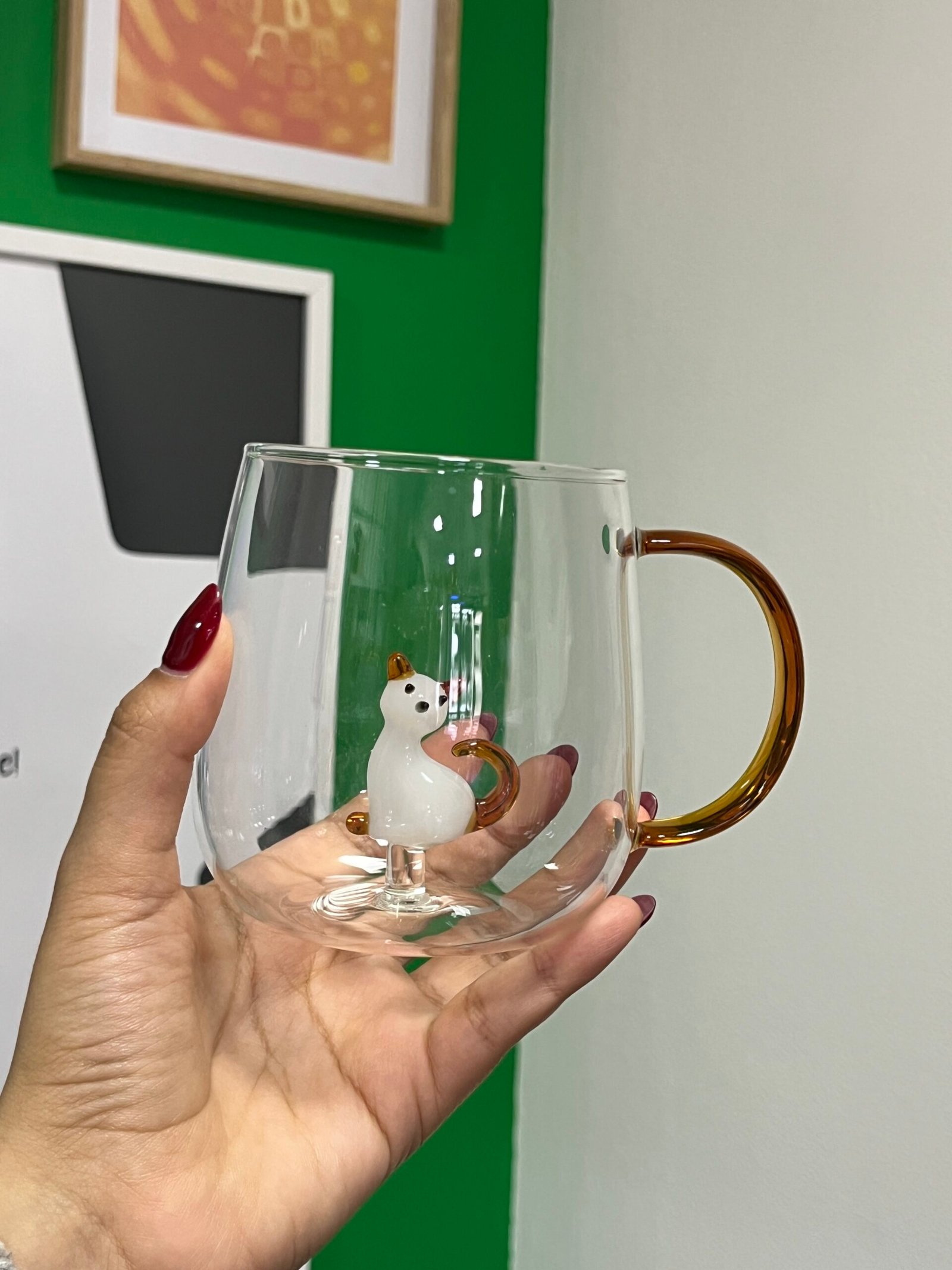 Taza relieve gato blanco con caramelo de vidrio