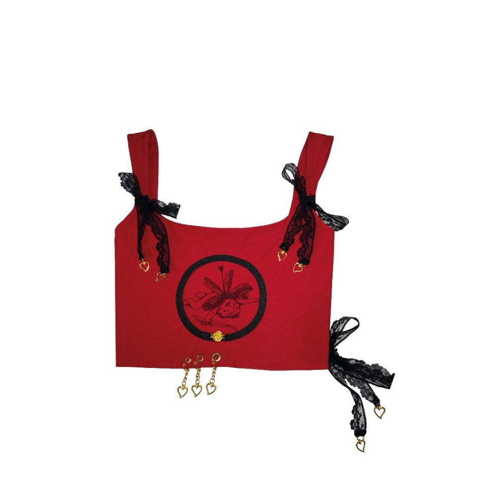 Top corazon estampado cupido y encaje