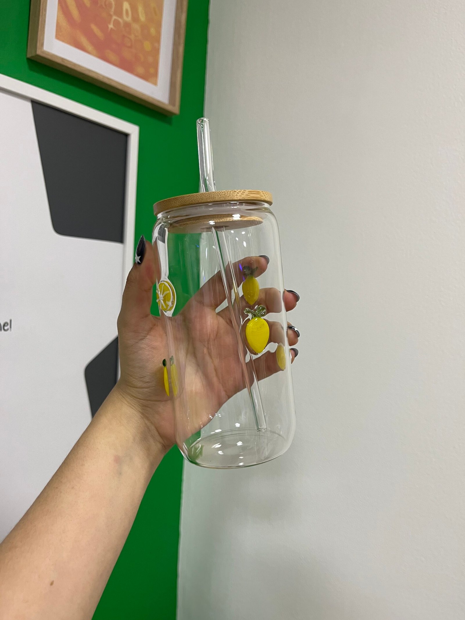Vaso vidrio limon con pajilla