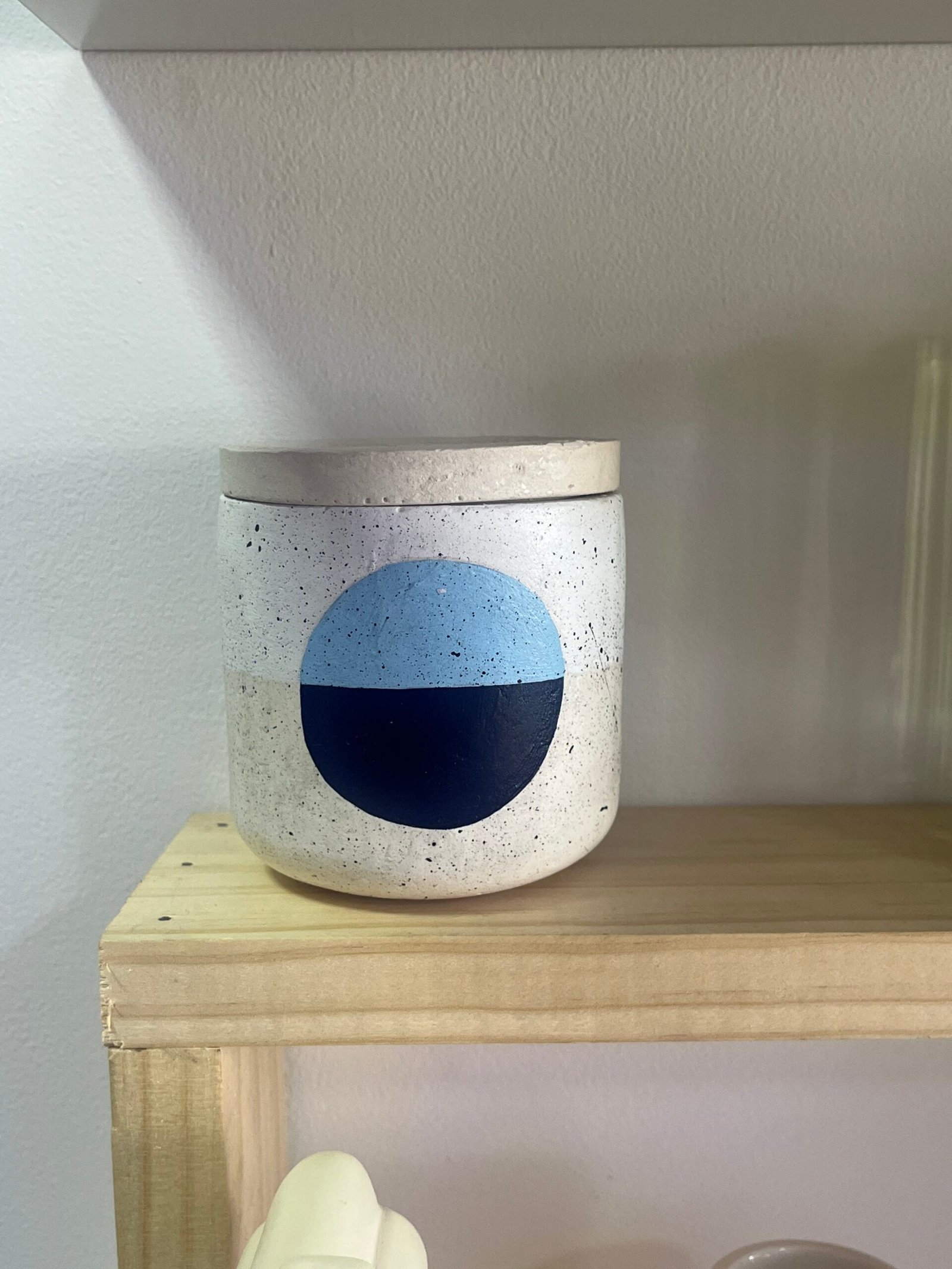 vela fragancia a menta con diseño circular azul