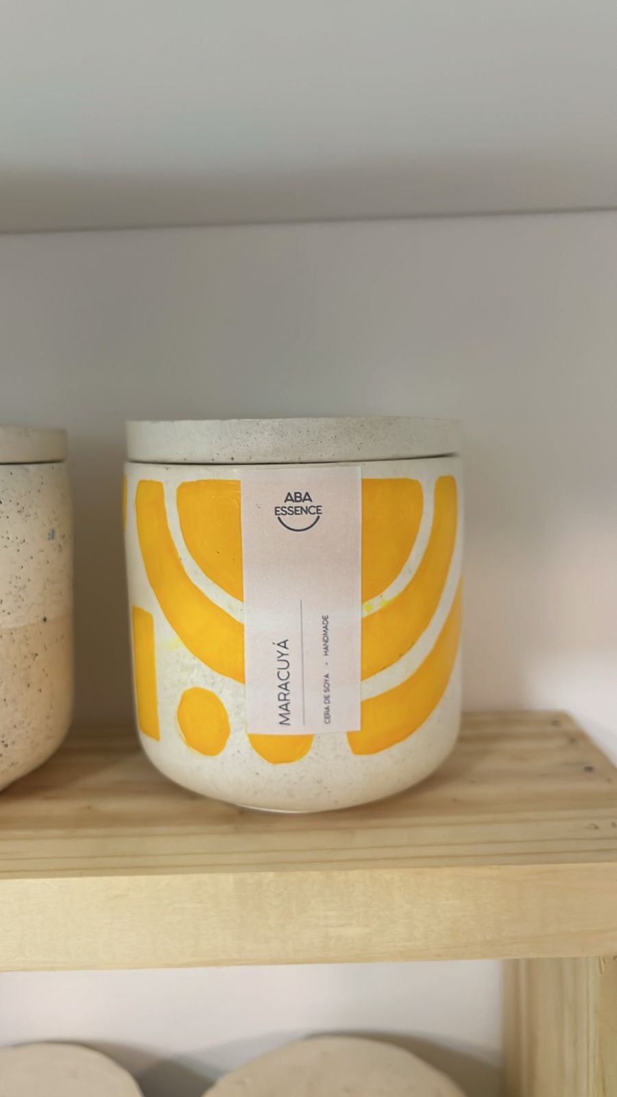 vela fragancia a maracuya con diseño de formas amarillas